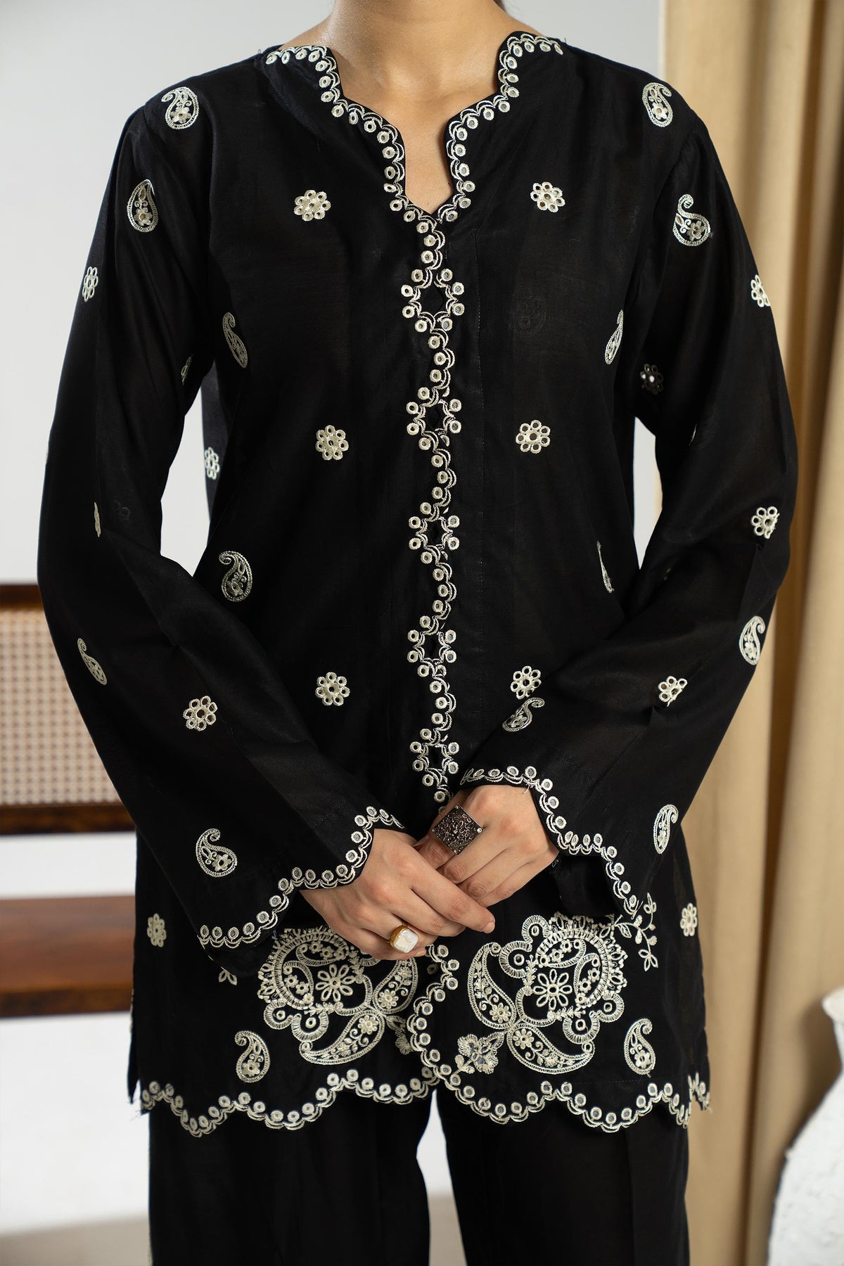 - Bottom Style: Embroidered Trouser