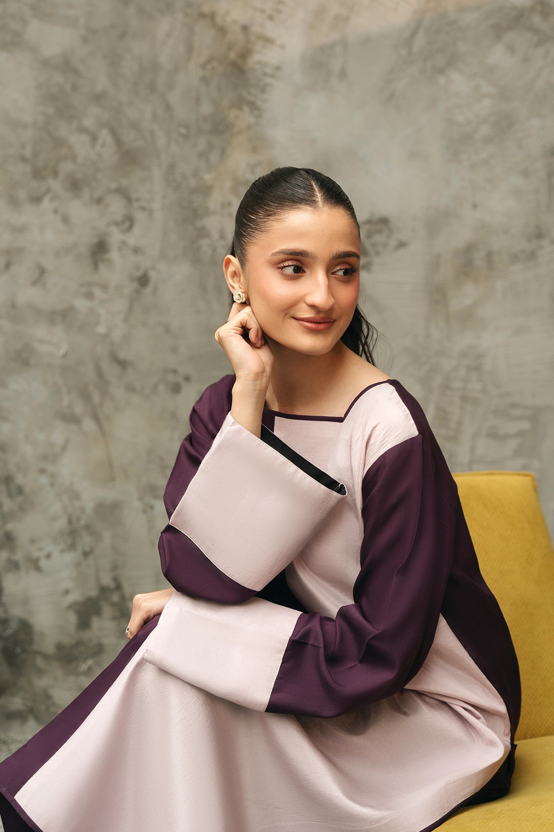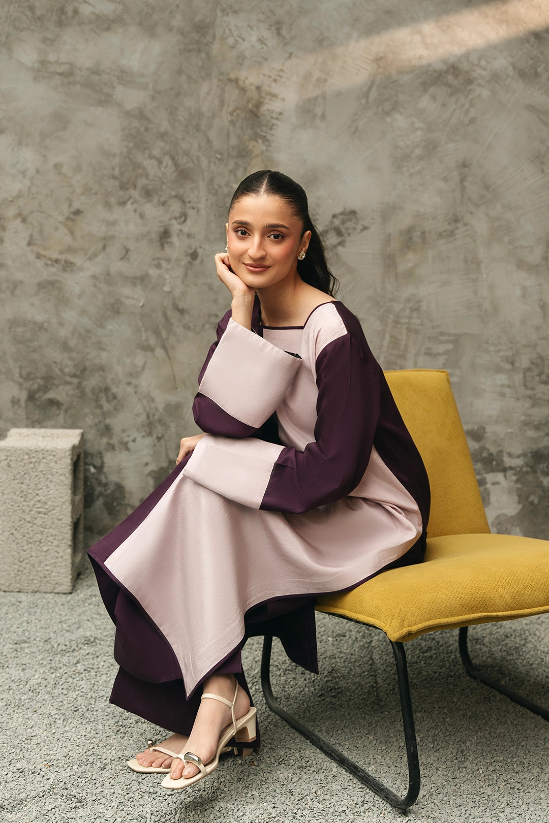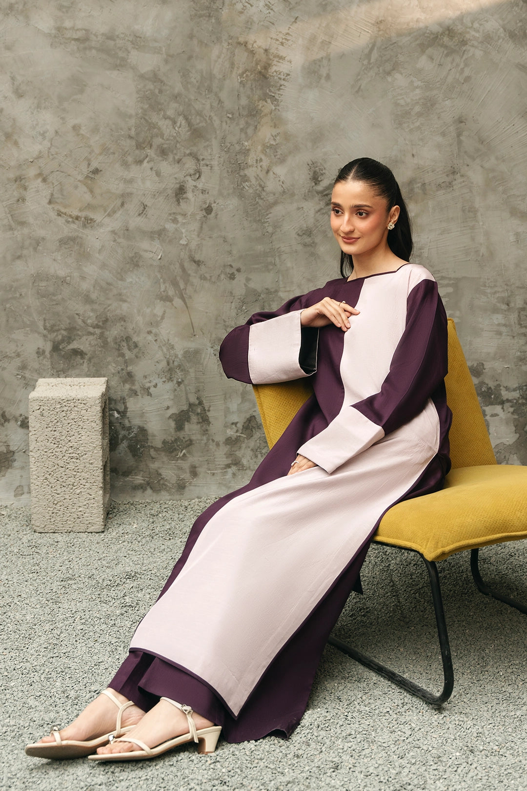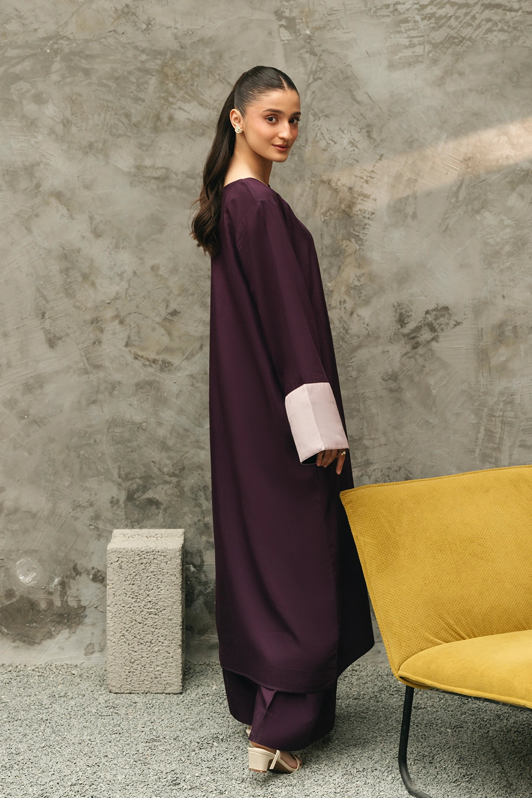 Description:• 2 tonal long shirt with slit at one side• Wide trousers